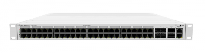 Z kolei CRS354-48G-4S+2Q+RM z 48 portami 1G, 4 portami 10G i 2 portami 40G to wybór dla rosnących organizacji. Switching capacity na poziomie 336 Gbps i cena około 499 USD oznacza doskonały stosunek ceny do możliwości. Ten model obsługuje stack, co pozwala na połączenie kilku urządzeń w jeden logiczny system i łatwe zwiększanie liczby dostępnych ports. Sprawdzi się w firmach, które planują ekspansję lub potrzebują wysokiej przepustowości do centrum danych.